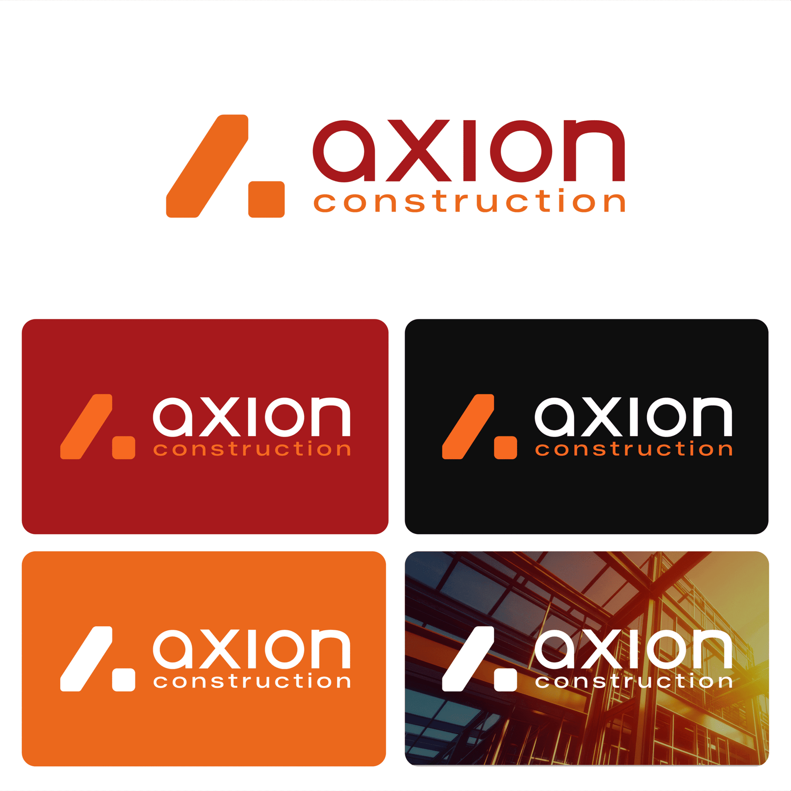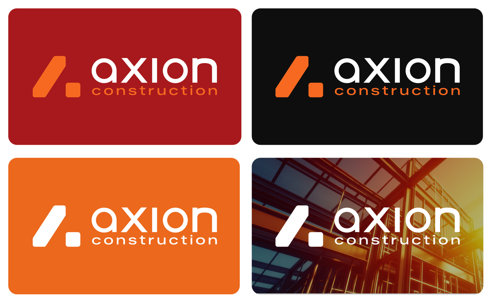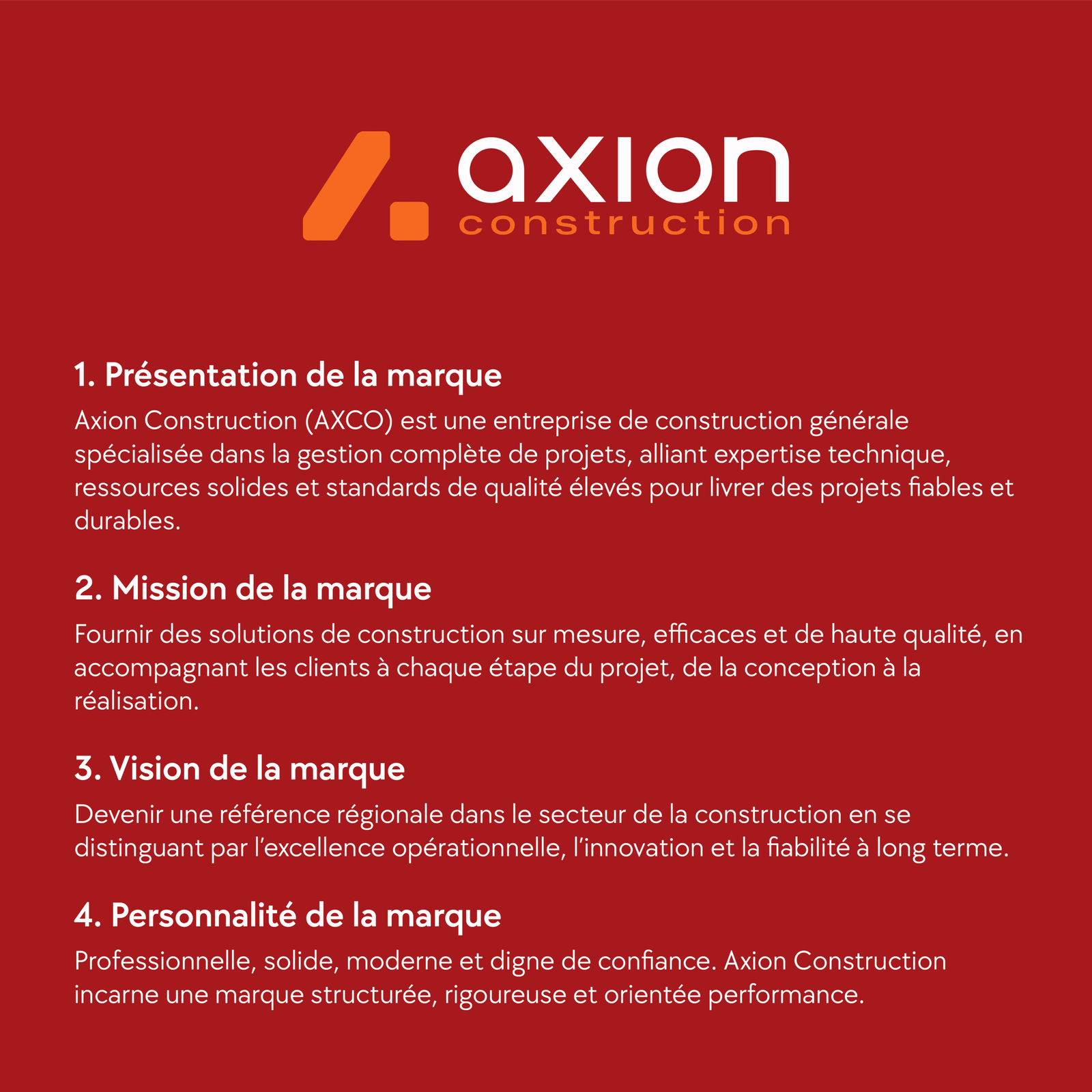 Le branding d’Axion Construction traduit une marque solide, structurée et orientée performance.